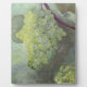 Das Bild zeigt eine Reihe von Trauben in Gelb- und Grüntönen, die an einer Rebsorte hängen. Die Trauben erscheinen plump und durchsichtig, was ihr frisches, saftiges Aussehen verstärkt. Die Blätter, die den Cluster umgeben, sind ein lebendiges Grün, mit empfindlichen Venen sichtbar, die der Szene eine Tiefe verleihen. Der Hintergrund ist sanft verschwommen, der Fokus wird auf die Trauben gelenkt und dem Bild ein Gefühl von Ruhe und Reife vermittelt, als wäre es ein warmer Spätsommertag. Die Farben sind weich, natürlich und wirken ausgesprochen reichhaltig
