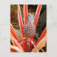 Auf dieser Postkarte befindet sich ein Foto einer Ananas, die in Hawaii wächst. Die kleine Ananas, die sich inmitten dieser farbenfrohen Pflanze in einem Garten auf Hawaii entwickelt, wird aus offensichtlichen Gründen als dekorative Ananas bezeichnet.