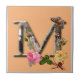 Schöner Buchstabe M, mit Vintagen Damen, Rosen und einem Schmetterling