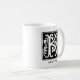 Diese Tasse kennzeichnet einen dekorativen Monogrammbuchstaben "K" mit einem Namen unten, damit Sie mit Ihrem eigenen Namen oder anderem Text personifizieren.