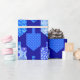 Dieses helle, zeitgenössische Hanukkah-Design zeichnet sich durch einfache Formen und komplexe Muster in einer klassisch blauen und weißen Palette aus