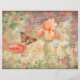 Monarchschmetterling, Iris Flag Blume und Wildblume Garten. Vintager Hintergrund mit Grünpflanzen und Efeu.
