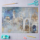 Das Bild ist ein detailliertes und künstlerisches Gemälde, das eine Mischung aus architektonischen Elementen aus der islamischen Architektur darstellt. Es umfasst Kuppeln, Minarette und aufwändig gestaltete Bögen, die die Schönheit und Komplexität islamischer Kunst und Architektur veranschaulichen. Das Gemälde verbindet coole und warme Farbtöne, wobei Blau und Gold hervorgehoben werden, was einen visuell auffälligen Kontrast schafft. Die Verwendung von Textur und abstrakten Elementen verleiht der Komposition ein besonderes Interesse und verleiht ihr eine faszinierende Kunstgeschichte: Detaillierte künstlerische Malerei, islamische Architektur, Kuppeln und Minarette, aufwändig gestaltete Bögen, Schönheit und Komplexität, Blau- und Goldtönen, visuell auffälliger Kontrast, Textur und abstrakte Elemente, faszinierendes Kunstwerk, architektonische Mischung.