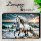 Majestätisches weißes Pferd am dramatischen Strand. Umgestalten Sie die Möbel an der Küste und steigern Sie den Wert und die Schönheit. Ideal für Zuhause am Strand. Perfekt für: Coastal Wände Strandhaus Dekoration Wohnzimmer Einstiegstafeln Marine zeigt Farbpaare: Perle + Aquamarine Creme + Ocean Sand + Azurblau Weiß + Wave Gold + Storm Schlüsselmerkmale: Dynamische Bewegung Ocean Wellen Strand Szene Sonnenuntergang Glühen Blühen Mund