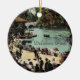 Vintage Postkarte, die den Delaware Park in Buffalo, New York im Jahr 1900 mit Standseilgarten zeigt, Leute, die am Ufer des Sees spazieren, und Bootsfahrer, die den Sommertag genießen. Auf diesem Weihnachtsschmuck mit Viktorianischem Filagreschnitt nachgedruckt.