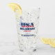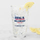 Personalisiertes Glas. Ein lebendiges Typografie-Design, das die Bedeutung von Delaware in der amerikanischen Geschichte unter Verwendung des fett gedruckten Textes und der Farben der amerikanischen Flagge zeigt. Personalisieren Sie das Glas vorne und hinten mit Ihrem Namen in der Vorlage.