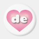 Dieser Magnet zeichnet sich durch ein ruhiges, cooles rosafarbenes Herz aus, mit einer weiß gekalkten Mitte, die die fett, weiß, abgerundeten Kleinbuchstaben de enthält, eine spielerische Abkürzung für den Staat von Delaware, dem ersten Staat.