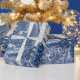 Delft Blue White Blume Bird Collage Decoupage Geschenkpapier