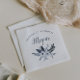 Fügen Sie Ihrem Brautparty oder Ihrer Babydusche eine süße Touch mit diesen schicken Blumenservietten hinzu. Das Design besteht aus zwei Textzeilen (mit "Duwers of Happiness [Name]" gezeigt) mit einer Dose von Blume und Botanicals in sanften Blautönen. Entworfen, um unsere Delft Floral Event Kollektion zu passen.