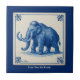 Für die eiszeitliche Küche: ein humorvoller, monoton, blauer Wollmammut (mammathus primigenius) im Stil einer Delft-Kachel. Passen Sie Ihren eigenen Text an.
