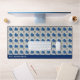 Ein humorvoller, monoton, blauer Wollmammut (mammathus primigenius) im Stil einer Delft-Kachel. Passen Sie Ihren eigenen Text an.
