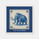 Ein humorvoller, monoton, blauer Wollmammut (mammathus primigenius) im Stil einer Delft-Kachel. Passen Sie Ihren eigenen Text an.
