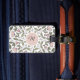 This pretty luggage tag features a retro-inspired floral design that's pure cottagecore bliss. Hand-drawn soft pink flowers and delicate green leaves dance across a clean white background, creating a charming and romantic feel. To make it truly yours, just click "Personalize this Template" to customize the monogram and add your contact details to the back.