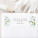 Ein Hochzeitsrücksendelabel mit hellblauen Blume und grünen Blätter