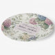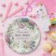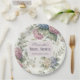Bridal shower paper plates featuring delicate hydrangea flowers in shades of dusty rose, light purple, and blue.
