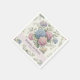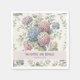 Wedding napkins featuring delicate hydrangea flowers in shades of dusty rose, light purple, and blue.