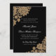 Delicate Lace Corner Black and Gold Script Wedding Einladung