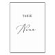 Dieser zarte schwarze Kalligraphietisch mit neun Tischnummern eignet sich perfekt für eine moderne Hochzeit. Das romantische minimalistische Design besticht durch eine hübsche und elegante schwarze Typografie auf weißem Hintergrund mit einem sauberen und schlichten Look. Die Karte druckt auf der Vorder- und Rückseite (beidseitig). Andere Tischnummern in der Sammlung werden separat verkauft.