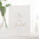 Dieses zarte goldene Kalligraphiesip und sein sitzendes Schild ist perfekt für eine moderne Hochzeit. Das romantische minimalistische Design besticht durch eine hübsche und elegante Champagner-goldgelbe Typografie auf weißem Hintergrund mit einem klaren und schlichten Look.