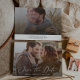 Diese zarte kalligraphische, horizontale, dunkle Foto-Overlay-Save the Date-Karte eignet sich perfekt für eine moderne Hochzeit. Das romantische minimalistische Design besticht durch eine hübsche und elegante Weißtypografie auf einem Foto-Hintergrund mit einem raffinierten Look.
