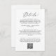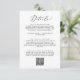 Diese delikate schwarze Kalligraphie qr Code Details Gehäuse Karte ist perfekt für eine moderne Hochzeit. Das romantische minimalistische Design besticht durch eine hübsche und elegante schwarze Typografie auf weißem Hintergrund mit einem sauberen und schlichten Look. Verwenden Sie den QR-Code, um auf Ihre Hochzeitswebsite zu verlinken, um weitere Informationen zu erhalten, um UAWG zu erhalten oder um ihre Lieblings-Foto-Erinnerungen für Ihren Empfang zu teilen.