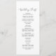 Dieses zarte, schwarze Kalligraphie-Programm und das Hochzeitsprogramm sind perfekt für eine moderne Hochzeit. Das romantische minimalistische Design besticht durch eine hübsche und elegante schwarze Typografie auf weißem Hintergrund mit einem sauberen und schlichten Look. Geben Sie den Namen der Braut und des Bräutigams, das Datum und den Ort der Hochzeit, Dankeschön-Nachricht, Dienstordnung, Hochzeitsfeier und ein optionales "in Loving Memorial" ein.