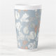 Delikate Zweige mit Blätter auf blau. Milchtasse