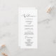 Dieses zarte, bedruckbare oder bedruckte Hochzeitsprogramm eignet sich perfekt für eine moderne Hochzeit. Das romantische minimalistische Design besticht durch eine hübsche und elegante schwarze Typografie auf weißem Hintergrund mit einem sauberen und schlichten Look. Geben Sie den Namen der Braut und des Bräutigams, das Datum und den Ort der Hochzeit, Dankeschön-Nachricht, Dienstordnung, Brautparty und ein optionales "in Loving Memorial" ein.