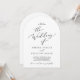 Diese zarte schwarze Kalligrafie in einer QR-Code-Bogen-Hochzeitseinladung ist perfekt für eine moderne Hochzeit. Das romantische minimalistische Design besticht durch eine hübsche und elegante schwarze Typografie auf weißem Hintergrund mit einem sauberen und schlichten Look. Rett Papier, indem man die Details auf der Rückseite der Hochzeitseinladung statt auf einer separaten Kapselkarte angibt. Fügen Sie Ihren Gästen einen QR-Code zum Karo Ihrer Hochzeitswebsite oder zum UAWG einfach online ein.