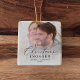 Diese zarte Keramik aus dem verlobten Foto der ersten Weihnachtszeit ist die perfekte moderne Weihnachtsbaumdekoration. Das romantische minimalistische Design besticht durch eine hübsche und elegante schwarze Typografie mit einem sauberen und schlichten Look. Dieses Sake-Ornament lautet "verlobte Weihnachten". Personalisieren Sie Ihr zweiseitiges Ornament mit Ihrem Verlobung Foto, Namen und das Jahr.