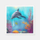 Ein Delphin, der in einem farbenfrohen Ozean mit hübscher Koralle in Aquarell schwimmt.