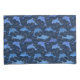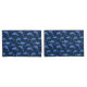 Ein blauer Kissenkoffer, der für ein Zimmer mit Kindern mit Badewanne und Delphinen ausgestattet ist.