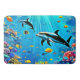 Tauchen Sie ein in ein sonniges Riff. Dieses Kunstwerk zeigt Delfine, die inmitten farbenfroher Korallen und Fische tauchen. Sehen Sie sich diese lebendige Szene an (Dieses Design wurde mit KI erstellt). Bestellen Sie noch heute und Embrace the Joy of Shopping!