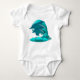 Ein mumiger und Baby-blauer Delphine sprang aus den Ozeanwellen. In den Wellen befindet sich eine Vorlage in schwarzem Text, die durch den Namen Ihres Kindes ersetzt oder einfach gelöscht werden soll, um leer verlassen.