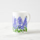 Ursprünglicher Entwurf der feinen Kunst von Delphinium oder Larkspur Blumen und Schmetterlinge durch Künstler Carolyn McFann zwei des schnurrenden Katzen-Studios druckte auf einer Qualitätsknochen-China-Tasse für Garten-Blumenfans.