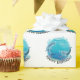 Delphine auf Erden mit Blasen und Happy Birthday Text auf einem weißen Hintergrund. Die Hintergrundfarbe kann geändert werden.