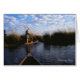 Okavango Delta Nature Photo Prints and Gifts (Imprimés et cadeaux de la nature du delta de l'Okavango) présente une belle photo d'une balade dans un makoro, un canoé creusé, sur le delta de l'Okavango au Botswana, prise par Kurt Keller avec un appareil photo de 35 mm, lors d'un safari africain au Botswana. Un homme à mât se tient dans le makoro devant le propulser à travers les eaux peu profondes du delta en se tenant dans la poupe et en poussant avec un poteau.Ceci a été pris en 2000, la première année après une sécheresse de 10 ans. Le camp où nous sommes restés avait donné des tours en jeep les années précédentes au même endroit que nous sommes maintenant en bateau.