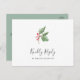 Cette carte postale de Noël verte demande RSVP est parfaite pour un mariage de décembre. Le design des vacances d'hiver est composé d'une branche blanche d'aquarelle verte à la sauge douce avec des branches de baies rouges classiques. Créez votre liste d'invités mariages et votre liste de chansons de piste de danse tout à la fois ! Cette carte postale de réponse mariage demande si les invités pourront assister à votre mariage, et aussi quelle chanson les amènera à danser.