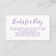 Une façon idéale de demander à vos invités d'apporter un livre à votre prochain baby shower ! La calligraphie violette associée à une police moderne est la façon parfaite de faire apparaître cette carte.
