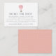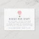 Faites glisser ces petites cartes dans vos invitations pour les douches pour bébés lorsque vous demandez des livres au lieu de cartes. Le design moderne présente des lettres bleues gris-fumé avec une illustration de ballon à air chaud couleur rose et pêche en haut. Un poème sucré explique la demande de livre : "juste une demande, nous espérons que ce n'est pas difficile // S'il vous plaît apporter un livre au lieu d'une carte // En signant votre nom, nous nous souviendrons et partagerons // votre cadeau sucré, même si vous n'êtes pas là." Personnalisez avec le nom et la date du baby shower de l'invité d'honneur en bas.