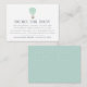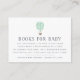 Faites glisser ces petites cartes dans vos invitations pour les douches pour bébés lorsque vous demandez des livres au lieu de cartes. Contemporain, le design neutre est composé de lettrage bleu gris fumé et d'une illustration en montgolfière couleur vert menthe pastel en haut. Un poème sucré explique la demande de livre : "juste une demande, nous espérons que ce n'est pas difficile // S'il vous plaît apporter un livre au lieu d'une carte // En signant votre nom, nous nous souviendrons et partagerons // votre cadeau sucré, même si vous n'êtes pas là." Personnalisez avec le nom et la date du baby shower de l'invité d'honneur en bas.