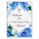 C'est une belle carte pour demander à quelqu'un spécial d'être votre commanditaire de confirmation. Il y a de jolis dahlias bleus avec un Crucifix doré - Tous le texte et les polices sont personnalisables. Le verset intérieur peut également être modifié.