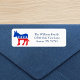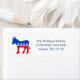 Niedlicher Demokrat Esel-Rücksendeadressen-Aufkleber für ein Mitglied des demokratischen Party, um E-Mails und Briefe zu senden. Dieser rote, weiße und blaue Esel drückt meine politische Meinung aus, ein gelber Hundedemokratin zu sein, wenn ich abstimme.