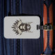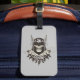 Wackelschädel mit gekreuzten Skeletthand, Hörnern und Rose.