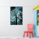 Dieses Poster zeigt den Blick von unten auf einen sehr hohen Tulpenbaum, der bis nach oben schaut. Der blaue Dämmerhimmel erzeugt einen interessanten, abstrakten, zarten Effekt von silhouetted Stamm und Ästen. Dieser riesige alte Baum lebt im Robert H. Treman Staat Park in Ithaca, New York.