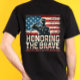 Hier ist ein Memorial Day T - Shirt Design mit einer Vintagen amerikanischen Fahne mit der Phrase "Honoring the Brave" in fett gedruckter, bedrückter Typografie. 🇺 🇸 ✨