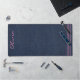 Ce nouveau produit est décoré avec arrière - plan en denim bleu foncé, nom de script vertical rose sur le côté gauche, et trois lignes roses pour l'équilibre. Modifiez ou supprimez le nom à l'aide du Modèle fourni. Ce design simple et moderne de bleu foncé et de rose se démarque dans la chambre d'un adolescent, le bureau à domicile ou la chambre d'un dortoir. Le tapis de bureau de 31,5 po x 15,5 po est fabriqué à partir d'un matériau en néoprène de 3 mm d'épaisseur durable avec dessus en polyester, un support antidérapant et le bord est ourlé. Vous pouvez utiliser l'outil de conception pour supprimer les lignes. Pour plus d'informations, reportez-vous à la section "À propos de ce produit" à côté.