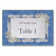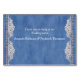 Denim Textur Hintergründe mit weißer Creme Spitze und einige mit hellen Bronze-Schmuck-Designs und Elfenbeinperlen zu personalisieren Zahlen und Namen Karten für jede Quest auf dem Tisch.