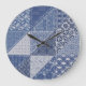 Denim Triangle Patchwork Vintage Textur. Große Wanduhr