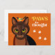 Das Design besticht durch eine spielerische, geometrisch braune Katze mit einem gelben Vogel auf dem Kopf. Die Katze scheint tief in Gedanken zu sein, mit einem nach oben gerichteten Blick. Begleitet von den Worten "Pfoten zum Nachdenken", strahlt diese Abbildung eine skurrile und kontemplative Atmosphäre aus.